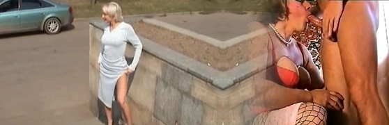 Wild and a bit plump mature lady in glasses gives a adorable head outdoors