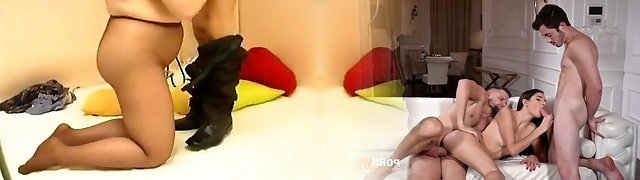 Her pantyhose drive him wild and he must jism on them