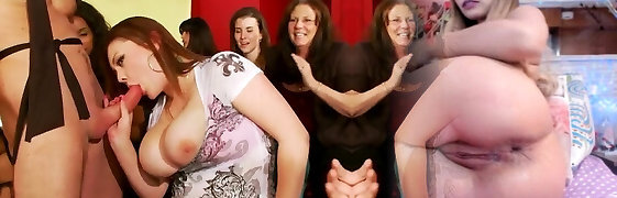 Busty sexy chicks go wild at the party and win a chance to be fucked rock-hard
