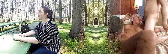Blonde In Public Deepthroats Weenie And Gets Fucked Fast In The Woods
