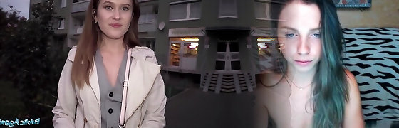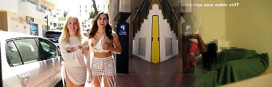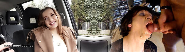 Slim Russian towheaded finger-tickled by random bystander on her driver's seat