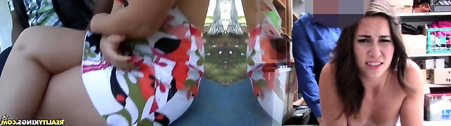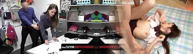 Hot tattooed MILF was caught stealing and conducted a full search in the back room.