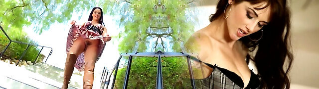 Pretty Brunette Pawg Sucks & Rides a Stranger's Dick In the Backyard In Front Of Her Muddy Stepmom