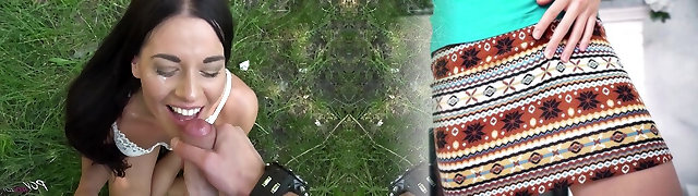Wonderful teen slut Abi sucks fuck-stick for money in the forest