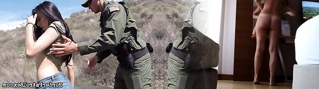 Bad female in short shorts gets drilled by a border patrol agent