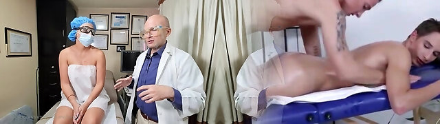 Woman with shaved pussy and big pussy at gynecologist