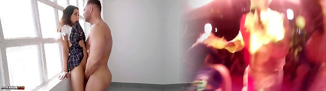 Cute dark-haired teen Mary Fox gets her shaved pussy rock hard pounded