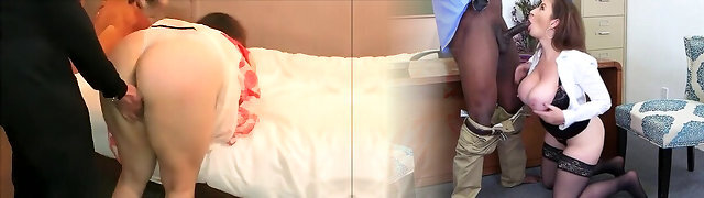 Old big-boobed secretary being spanked, fucked and creampied