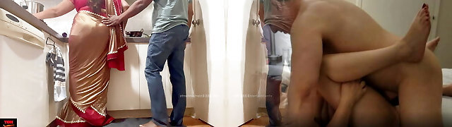 Indian Couple Romance in the Kitchen - Saree Sex - Saree lifted up and Backside Spanked