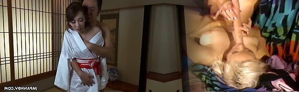 Japanese geisha Aya Kisaki gets her twat fucked and filled with sperm