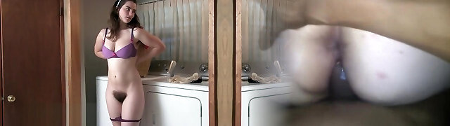 Snow enjoys trying on lingerie by her drye