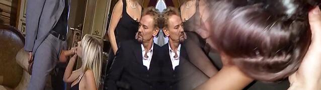 Swingers at a soiree strip down and commence sucking and fucking