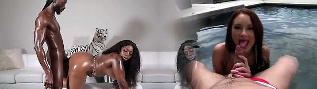 Firm threesome vaginal nailing for two babes of different skin colors