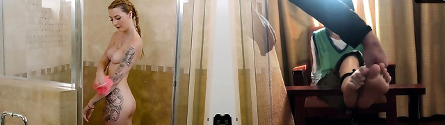 Tattooed Megan Winters moans during tough sex in the shower