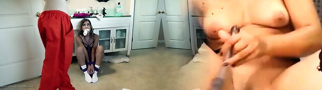 Spectacular Buxom Brunette Maid Pleases Her Bald Pussy With Sex-toys While Her Chief Is Not Home