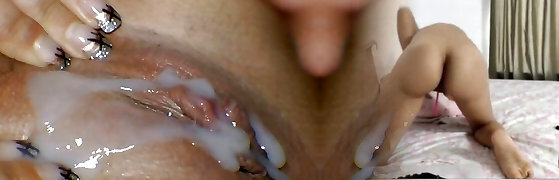 Mea Melone gets big fat jizz shot all over her pussy and belly