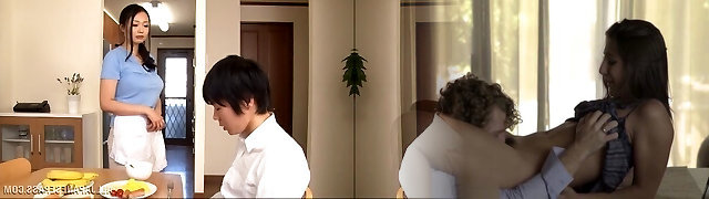 Horny Asian slut, Miho Ichiki, demonstrates her huge fun bags and shrieks while getting a creampie from Two super-naughty folks - real JAV threesome!
