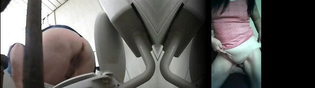 Covert cam movie caught big ass of Russian brunette in the public toilet