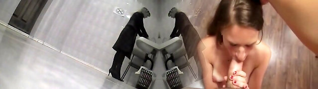 Angel Wicky bj's a cock in the toilet and takes it into her pussy