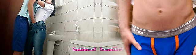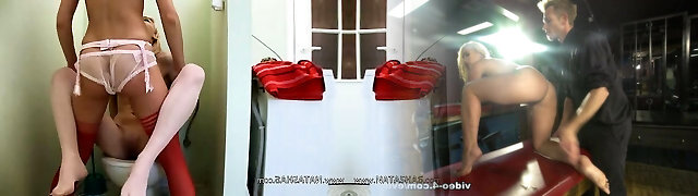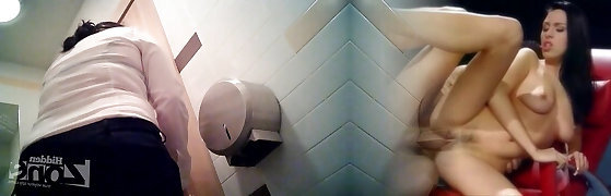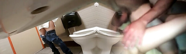 Big tits amateur steps into the toilet for a doggy style tearing up through a glory slot