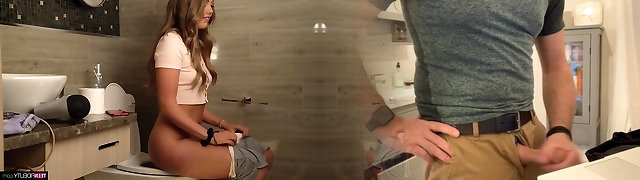 Ebony hottie Lola Chanel is fucked by wild stepbrother in the bathroom