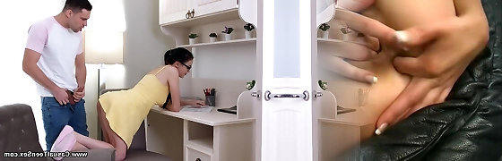 Nerdy office secretary Pristine Edge is drilled mish on the table