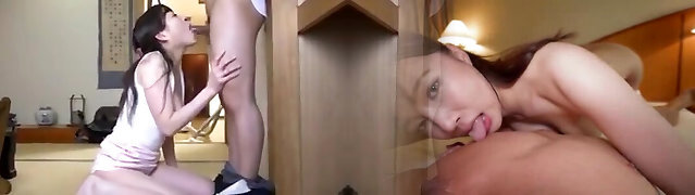 Lovely looking Japanese housewife Yuma Miyazaki deep-throats prick of her lucky hubby