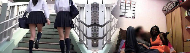 Some soiree Japanese girls are ready for hairy pussy fingering workout