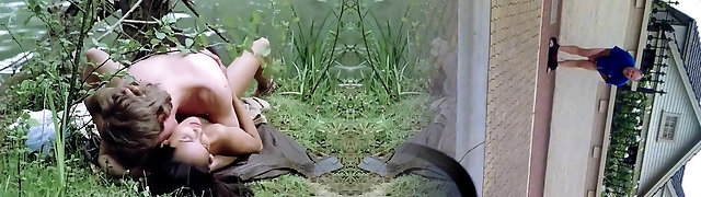 A super busty German brunette gets her vagina hammered outdoors
