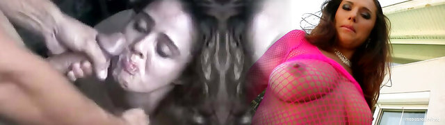 Vintage brunette in stockings red-hot fucking with facial