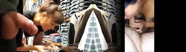Public rod flash in front of the clothing store assistant finished up with a blowjob and quickie in the changing apartment