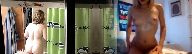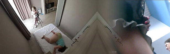 Hidden camera spy on 2 mature BBWs behind the gigs. Chubby girlfriends shoot sex tape at home on the bed. Fetish.