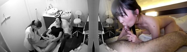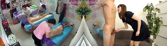 Super-naughty Asian female stretches fur covered nub in massage parlor dvd 06