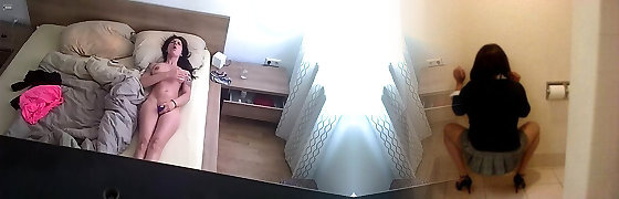 Bitch with big ass changes clothes and gets took hold of by a spy cam