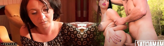 Curvaceous housewife, Aleina is fucking her toyboy and playing with her mammories at the same time