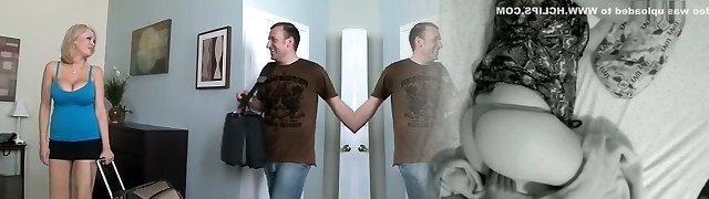Sex-positive wife in a hotel guest room to be shared by two guys